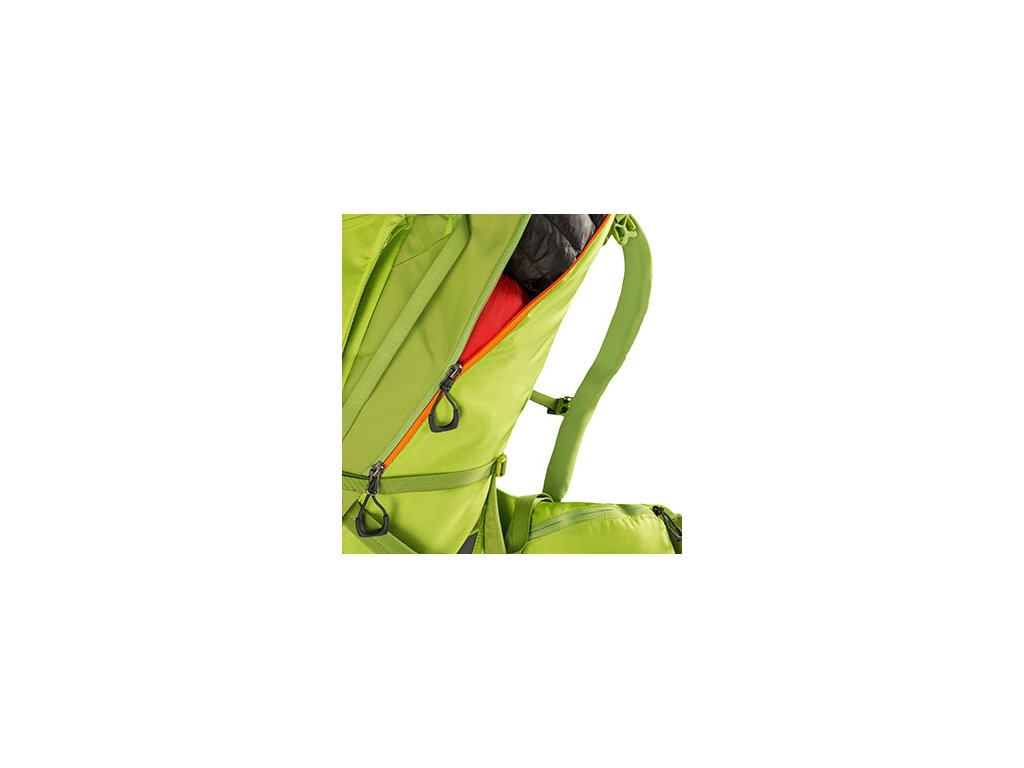 Hlavní komora technického batohu Gregory Alpinisto 50 má přístup shora a také z boku. Díky tomu je mnohem snazší dosáhnout na věci uvnitř batohu, aniž byste museli vyndávat polovinu batohu uvnitř. Do prostoru batohu lze úspěšně umístit zásobník na vodu vyvedením trubice ven speciálním otvorem. Pod klopu batohu, která se uzavírá odolnou kovovou sponou, se snadno vejde přilba a lano. Díky kompresním popruhům na bocích batohu lze celý batoh pevně stlačit, čímž se omezí možnost posunu předmětů uvnitř, a tím se zlepší stabilita přepravovaného zavazadla.