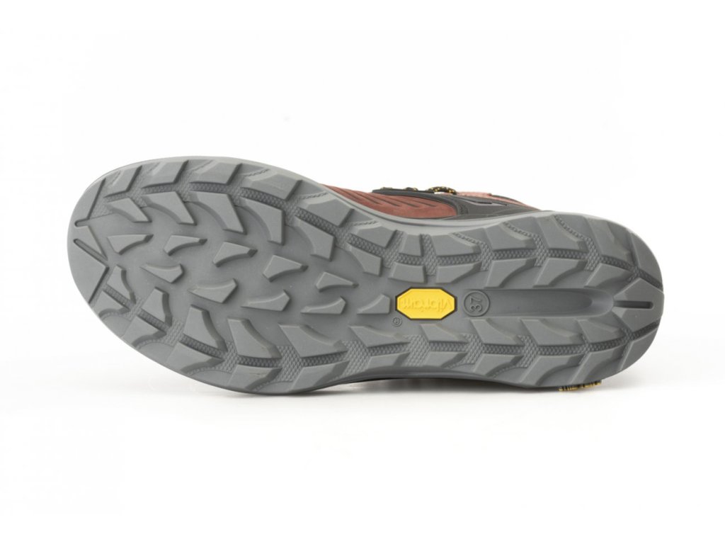 Komfortní dámská treková bota s minimem švů. Nová kolekce Grisport Adventure se vyznačuje pohodlím, mj. díky ultralehké PU mezipodešvi, do které byly přidány mikro vzduchové bublinky. Nášlap i došlap je tedy velmi měkký a komfortní. Hloubkově profilovaná pryžová podešev Vibram poskytuje zvýšenou přilnavost v terénu. Svršek je z kvalitního hovězinového veluru. V patní části se nachází zdokonalený patentovaný Support System pro efektivní podporu kotníku a fixaci chodidla v obuvi. Tento model má také vyztuženou špičku pro lepší odolnost a ochraně proti okopu. Proti vlhku a chladu spolehlivě chrání membrána Gritex.