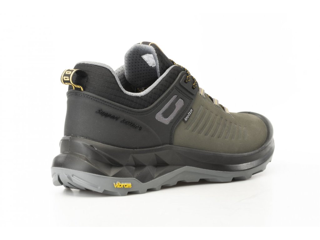 Komfortní unisex treková bota s minimem švů. Nová kolekce Grisport Adventure se vyznačuje pohodlím, mj. díky ultralehké PU mezipodešvi, do které byly přidány mikro vzduchové bublinky. Nášlap i došlap je tedy velmi měkký a komfortní. Hloubkově profilovaná pryžová podešev Vibram poskytuje zvýšenou přilnavost v terénu. Svršek je z kvalitního hovězinového nubuku. V patní části se nachází zdokonalený patentovaný Support System pro efektivní podporu kotníku a fixaci chodidla v obuvi. Tento model má také vyztuženou špičku pro lepší odolnost a ochraně proti okopu. Proti vlhku a chladu spolehlivě chrání membrána Spotex.