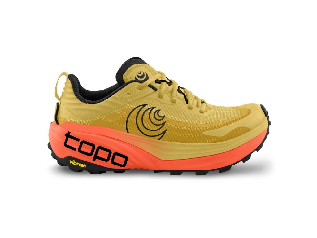 Topo Athletic Vista je maximálně tlumená trailová bota navržená pro náročné terény, dlouhé trasy i pohodlnou každodenní chůzi. Díky prostornému tvaru v oblasti prstů podporuje přirozené roztahování nohy a umožňuje přirozený krok. Rockerová konstrukce podrážky napomáhá plynulému přechodu od paty ke špičce a zajišťuje hladký krok při chůzi i běhu.
