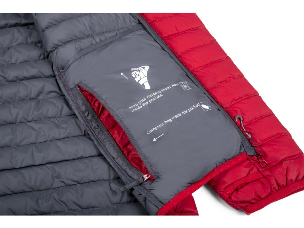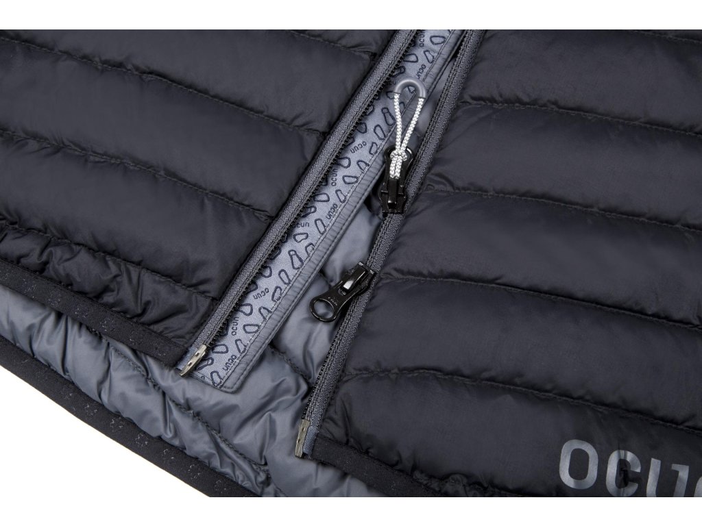 Ocún Tsunami ECO Men jepánská péřová bunda vyrobena z 100% recyklovaného polyamidu, je plněna kachním peřím. Bunda je lehká, váží pouze 370. Ergonomický střih vhodný pro lezení, skialpinismus, cestování. Prodloužené tělo, v rukávu je otvor na palec, aby bylo možné zastrčit ruce do rukávů. Uvnitř rozměrné kapsy na lezečky, při zimním bouldrování je pak nemáte vymrzlé.