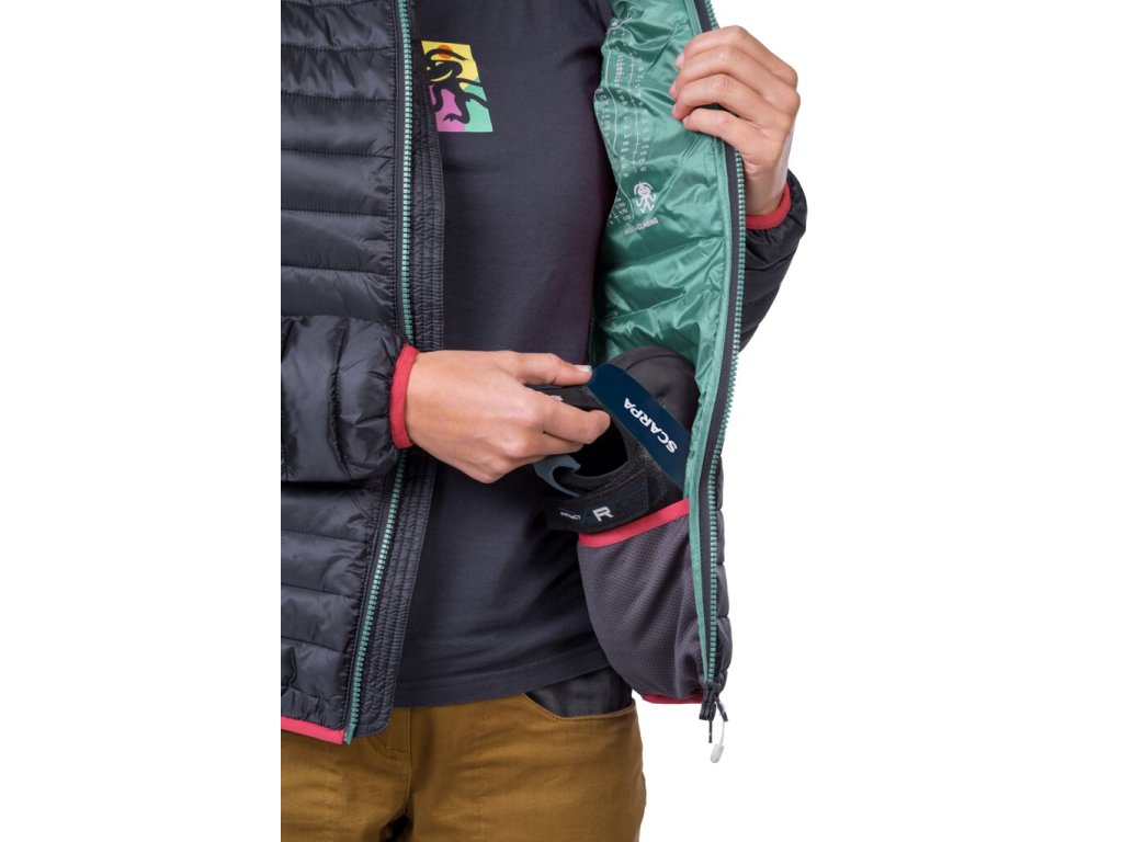 Lehká, hřejivá a praktická – RAFIKI DARCY je ideální bunda pro lezkyně, které chtějí zůstat v teple i při jištění v chladných podmínkách.