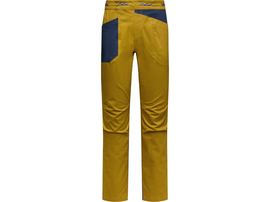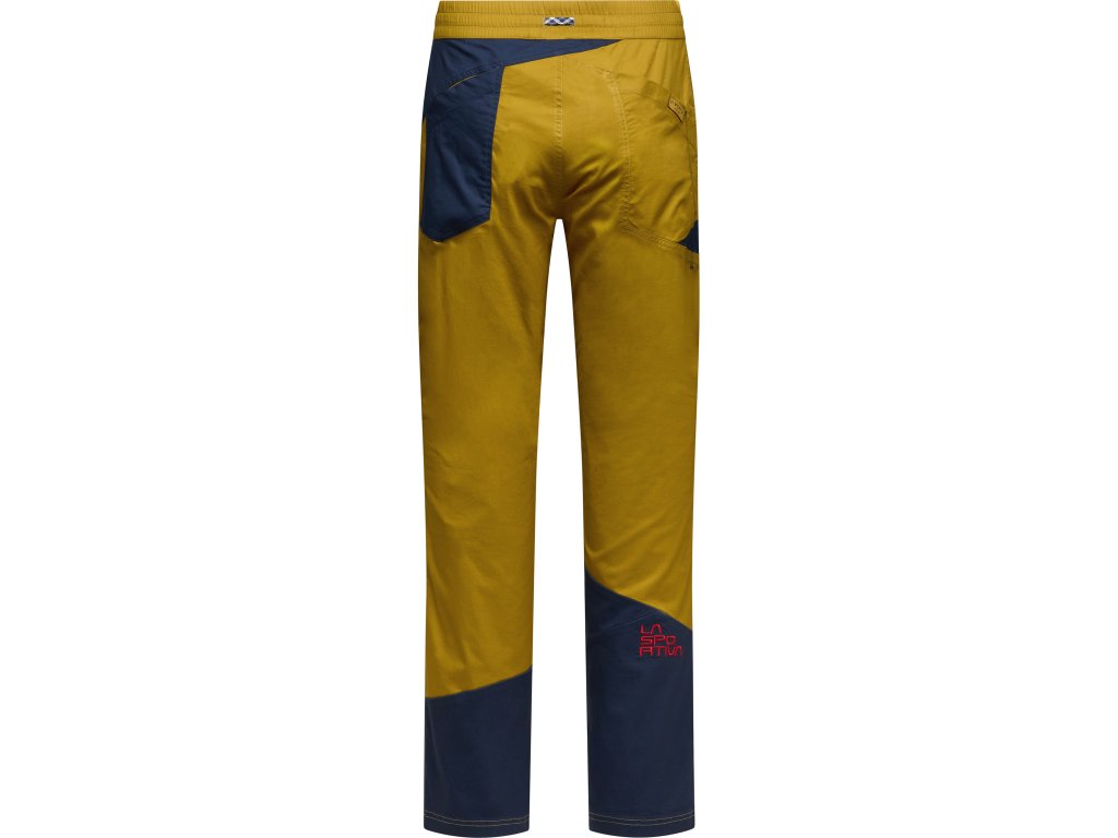 Pánské stylové kalhoty z pevného materiálu od firmy La Sportiva, které jsou vhodné pro lezecké aktivity, ale své využití naleznou i na běžné nošení. Kombinovaný materiál s příjemnou organickou bavlnou zajistí pohodlí a příjemný pocit při nošení. Poskytují maximální svobodu pohybu díky elastickému pasu a integrovanému klínu v rozkroku.