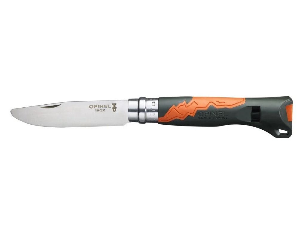 Outdoorový nůž Opinel s čepelí o délce 7 cm z vysoce kvalitní švédské nerezové oceli odolné vůči korozi. Přídavek uhlíku zaručí perfektní hranu i při styku s tvrdším materiálem bez nutnosti broušení. Rukojeť z odolného polymeru v barvě khaki tvrzená sklolaminátem odolávající extrémním teplotám i vodě a měkčená pro příjemný úchop. Pojistka ViroBloc proti zavření i otevření čepele. Zaoblená špička pro bezpečnou manipulaci. Na konci rukojeti umístěna praktická píšťalka a očko pro přichycení.