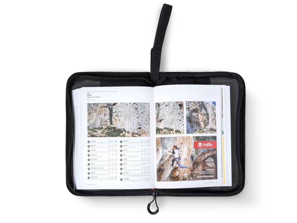 Představujeme ti praktický obal na všechny (horo)lezecké průvodce, do kterého snadno narveš ty nejtlustší bichle, i útlejší formáty. Jeho nejdůležitější funkcí je ochrana tvé lezecké bible. Obal je navíc vybaven praktickým poutkem, takže průvodce můžeš kdekoliv „přicvaknout“ nebo pohodlně pověsit.