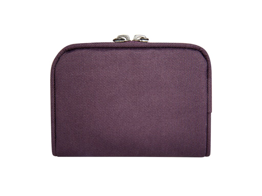 Peněženka o rozměrech občanky. Zip kolem dokola, uvnitř 2x kapsa na zip a několik přihrádek.