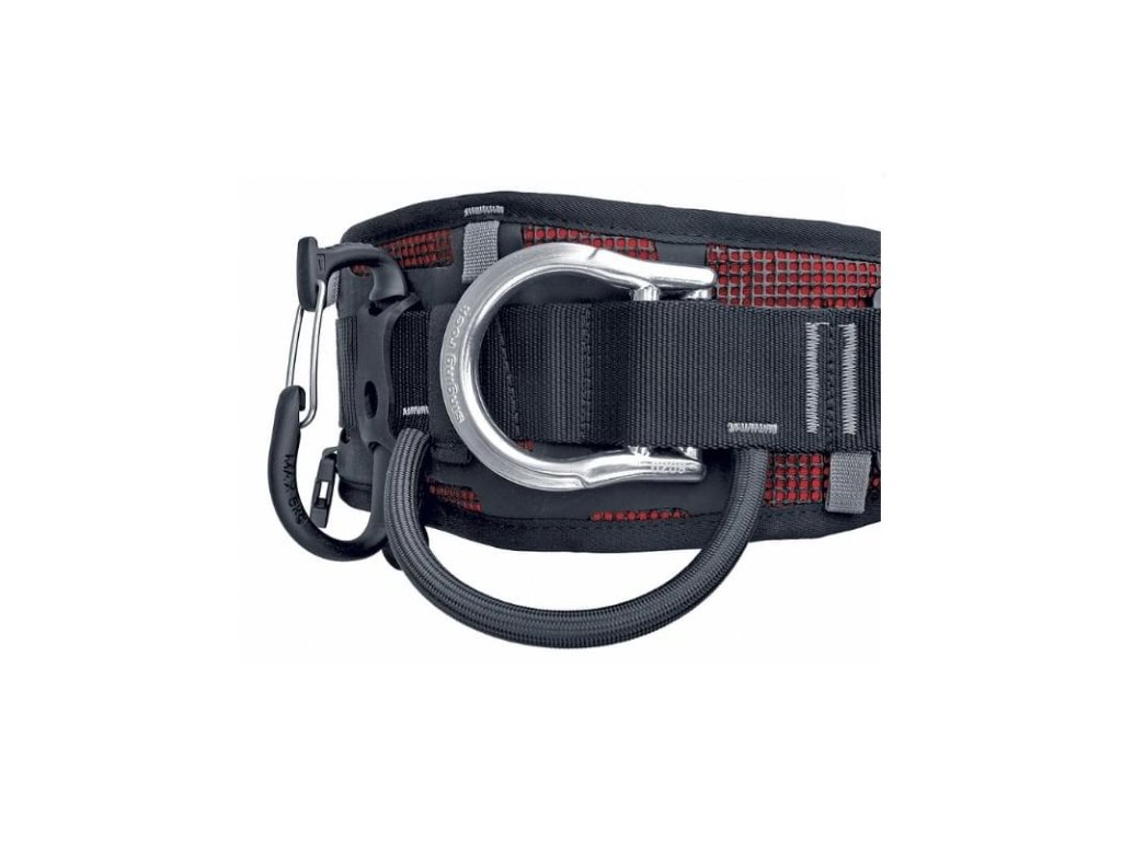 - pryžový pásek pevně fixuje karabinu k popruhu úvazku a zabraňuje jejímu přetáčení