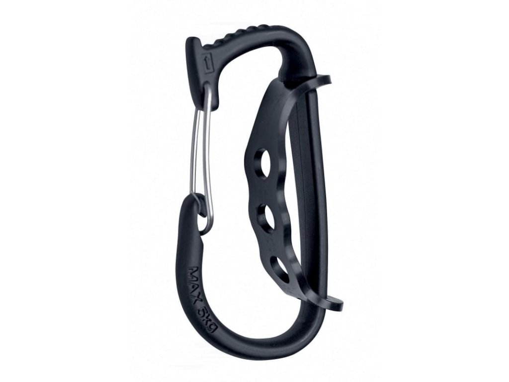 - plastová karabina pro nošení ledovcových šroubů, skob a nářadí na úvazku